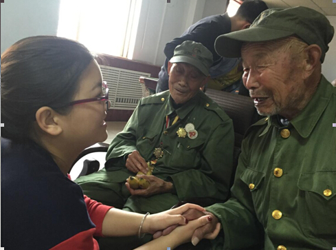 在光荣院,员工党员们陪着老人们聊天、下棋,听老人讲述艰苦战争岁月与今天的幸福生活,帮助他们打扫屋子,做些力所能及的劳动。抗日老兵李民强爷爷对员工党员说:“现在的生活和教育条件好了,你们应该珍惜现在的一切,相信知识能够改变命运,坚持活到老学到老。”