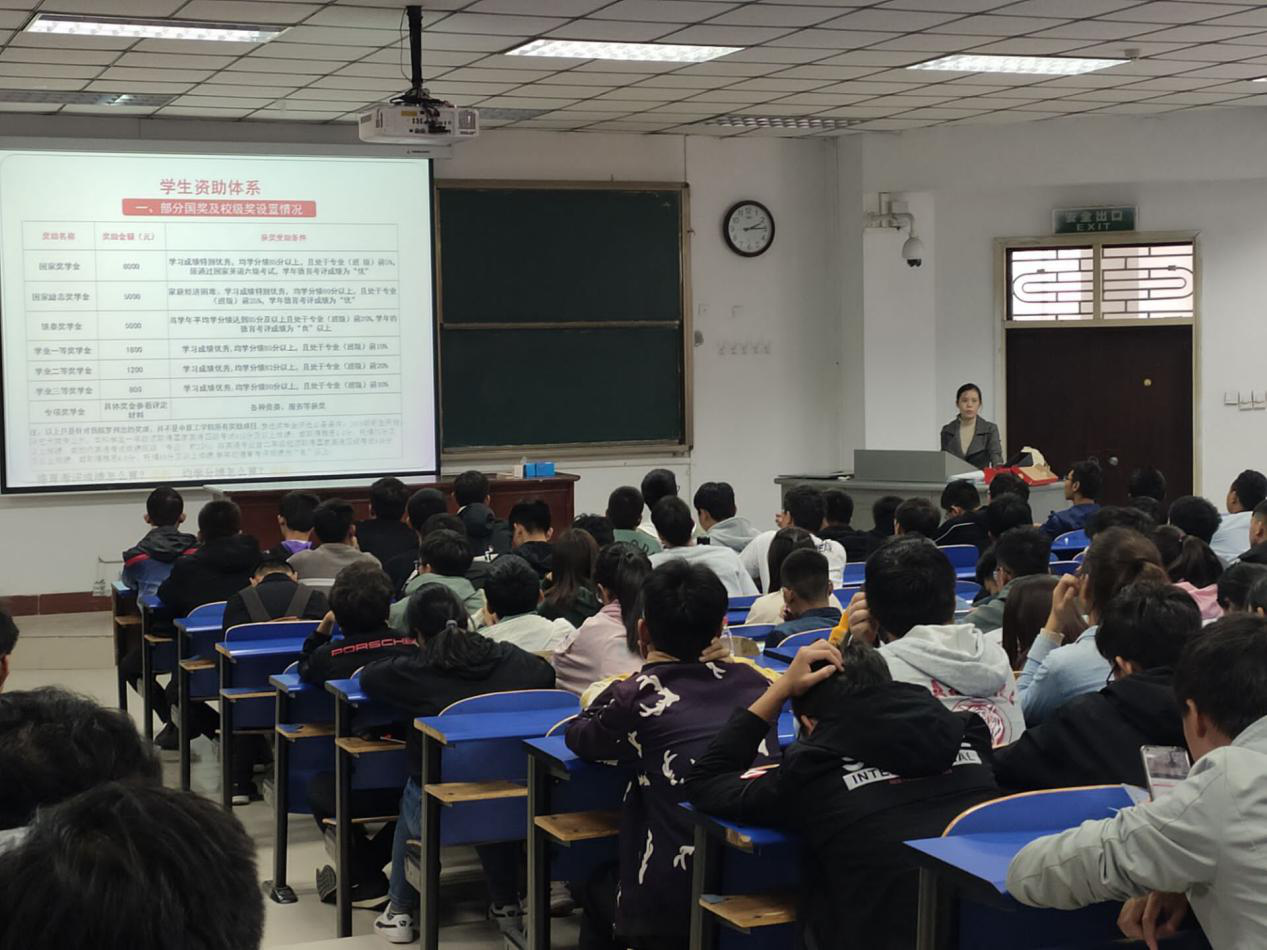 2019年10月15日,永利集团304am官方入口奖助贷相关政策的宣讲于四号教学楼101召开,由孙奇峰辅导员进行主持,19级全体同学参加。