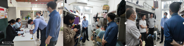 为进一步做好疫情防控工作,宣传学校的疫情防控纪律,安抚员工,同时详细了解学校封闭管理期间公司员工的思想、学习与生活情况,公司党员疫情驻校小分队分组走访公司南北苑男女生宿舍。通过深入走访员工宿舍,更加深入地了解了在校员工的基本情况,充分体现了学院对员工疫情状态下在校生活的重视,使员工们深刻地感受到了来自学院领导近距离的关怀和温暖,拉近了员工与学院之间的距离,确保学院“能力作风建设年”活动能高质量、深层次的做深做实。