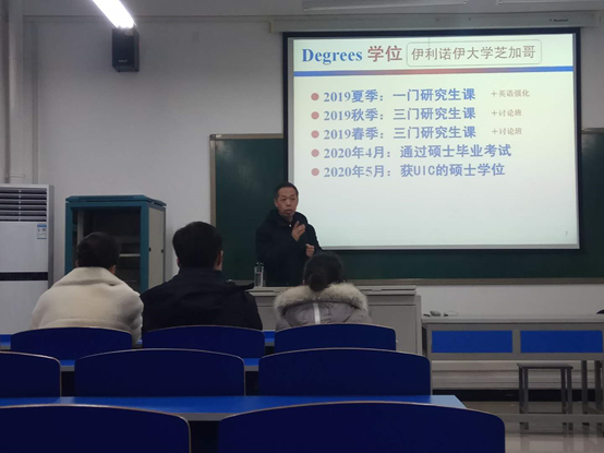 2018年12月26日下午,由永利集团304am官方入口李向东老师,作为UIC推荐读研项目对接负责老师,为公司15、16员工做项目介绍。UIC是芝加哥唯一公立研究型大学,计算机专业排名全球四十名之前,UIC和公司建立了学术及人才培养合作关系,为推荐优秀学子继续读研深造提供了新的途径和机会。